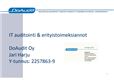• SAP – IT audit, SOX, ITIL prosessit, käyttäjäoikeuksien hallinta, pääsynhallinta, tietoturva- ja sovelluskontrollit, Unix/Windows-ympäristöt, Business Continuity Plans (BCP) • konsernin intranet – SOX, ITIL, CoBIT prosessit, tietoliikenne • konsernin Internet – penetraatiotestit, tietoliikenne, prosessit • Tutkimuskeskus – IT audit • Maailmanlaajuisen myyntikonttoriverkosto – IT audit, SOX prosessit audit, AD-ympäristö, Disaster Recovery Plans (DRP)